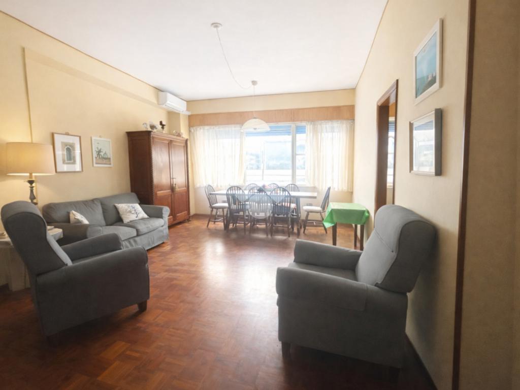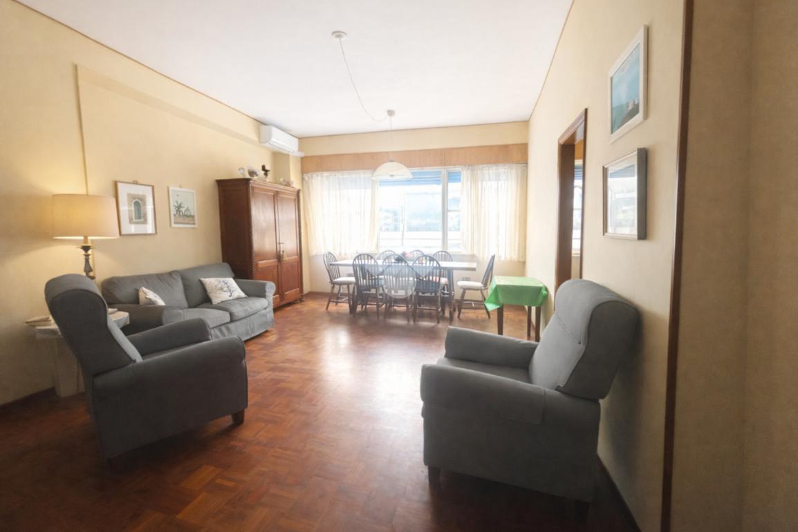 Luminoso soggiorno con cucinotto separato e ripostiglio finestrato.